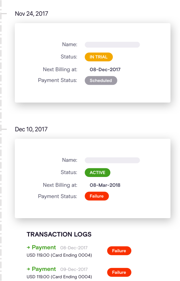 - Dunning ManagementAssess timely payment retries and contextual retry emails, for every failed attempt to charge a card.